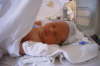 Dies ist Marlon an seinen ersten Lebenstagen, noch in der Klinik und immer wieder verkabelt ... aber trotz allem zufrieden...